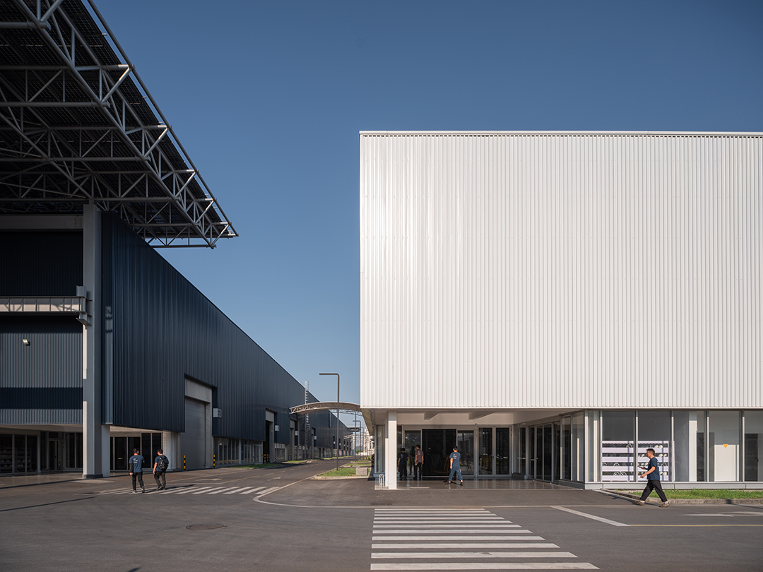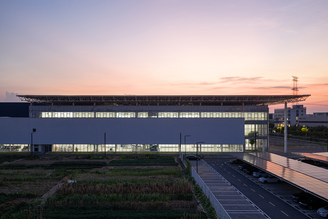 Il cuore del sistema energetico sostenibile è costituito da un impianto fotovoltaico da 11,69 MW installato sul tetto, che produce in media 11,42 milioni di kWh all’anno, equivalenti al consumo annuale di circa 4.000 famiglie. Questo sistema consente alla fabbrica di raggiungere quasi il 100% di autosufficienza energetica, coprendo completamente il fabbisogno operativo e reimmettendo nella rete elettrica il 37% dell’energia in eccesso, contribuendo così alla fornitura di energia rinnovabile a livello regionale e promuovendo l’obiettivo di neutralità carbonica. Inoltre, un sistema di raccolta e riutilizzo delle acque piovane favorisce il riciclo idrico in tutto il complesso. L’area circostante integra piccoli orti agricoli, che forniscono verdure per la mensa aziendale, migliorano il paesaggio e offrono spazi di svago per i lavoratori.